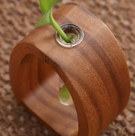 כוסית קומפקטית ויצירתית המשלבת בסיס עץ איכותי עם כוס זכוכית שקופה, אידיאלית להצבת פרחים טריים או צמחים במים. מושלמת ליצירת סידורי פרחים מיניאטוריים, קישוט שולחן, מדף או פינת עבודה בבית ובמשרד.